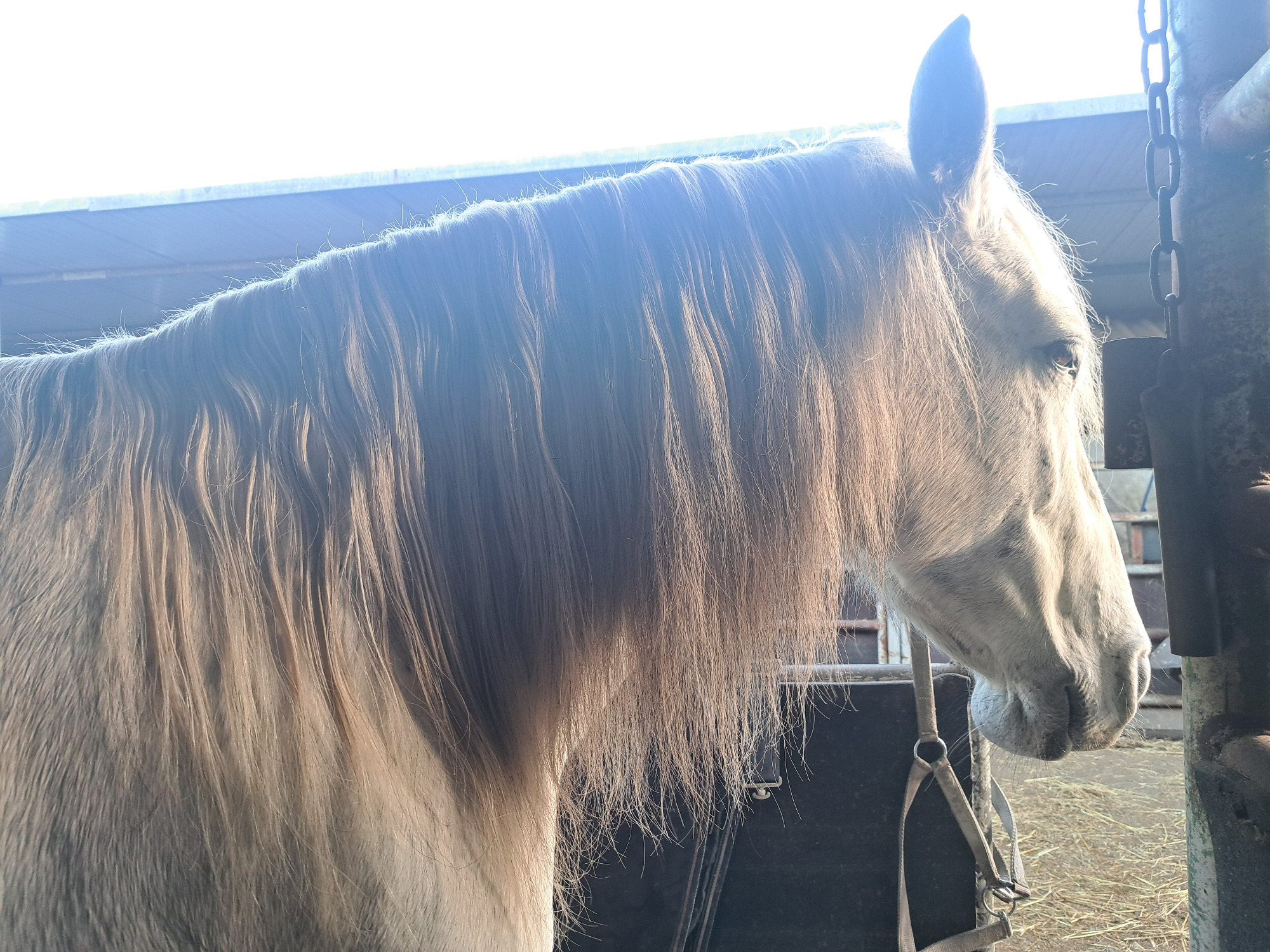 Dit zijn foto's van mijn eigen Limo, toen we hem kochten met bloempot kapsel :-) en ongeveer een jaartje later. Met deze voedende spray ga je zo gemakkelijk door de manen en staart heen (zelfs zonder elke keer te hoeven wassen), dat ze enorm zijn gegroeid. Ik heb amper drie haren in mijn kam!